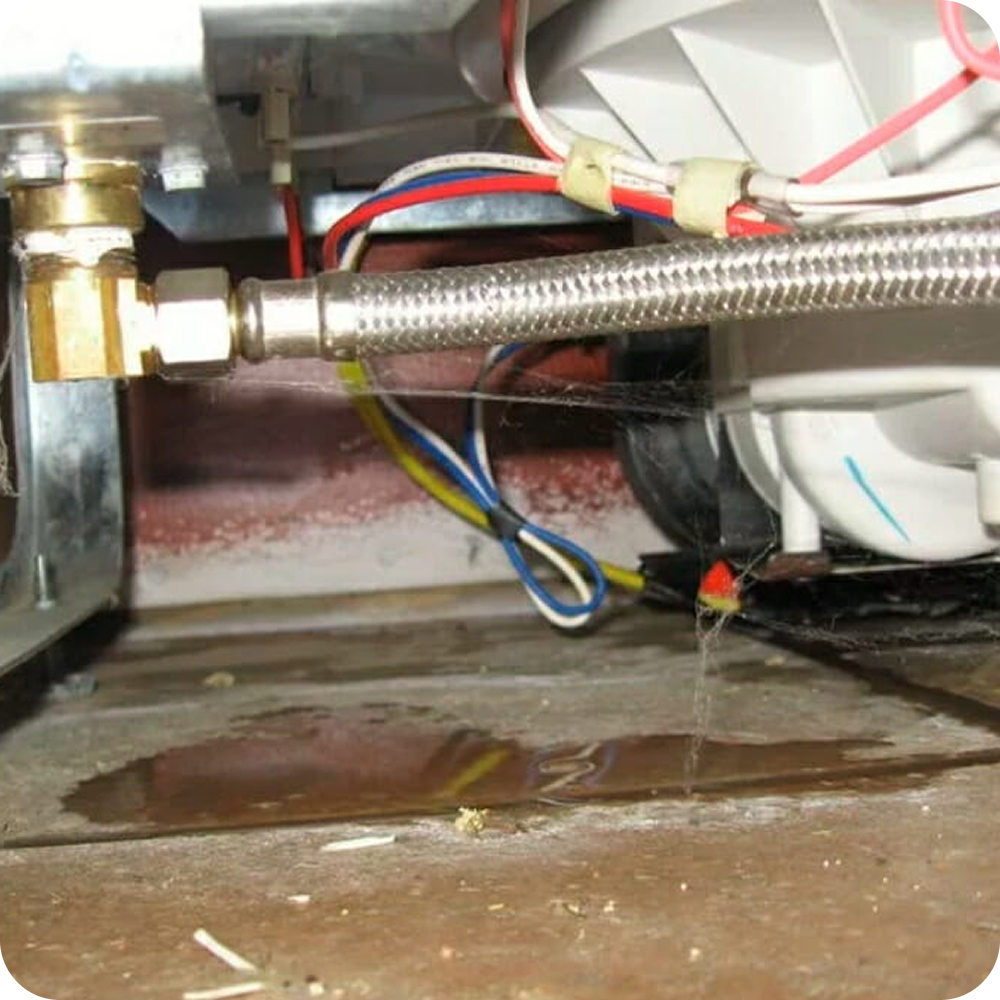 Осушил поддон, заменил протекающий шланг.